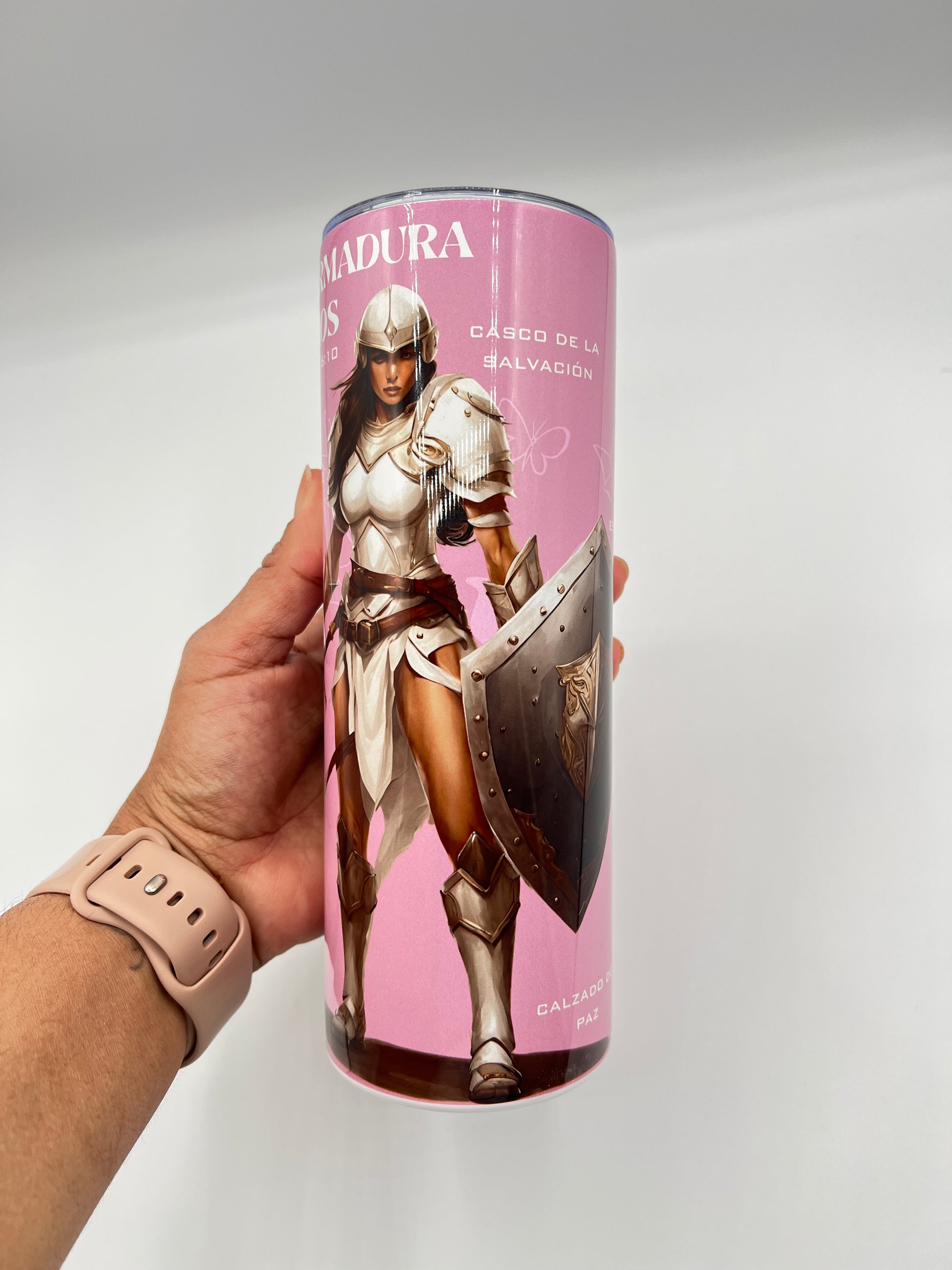 God’s Armor 20oz Stainless Steel Water Bottle – Portable Tumbler with Lid & Straw | Leak-Proof, BPA Free, Christian Gift – Pink & Beige
