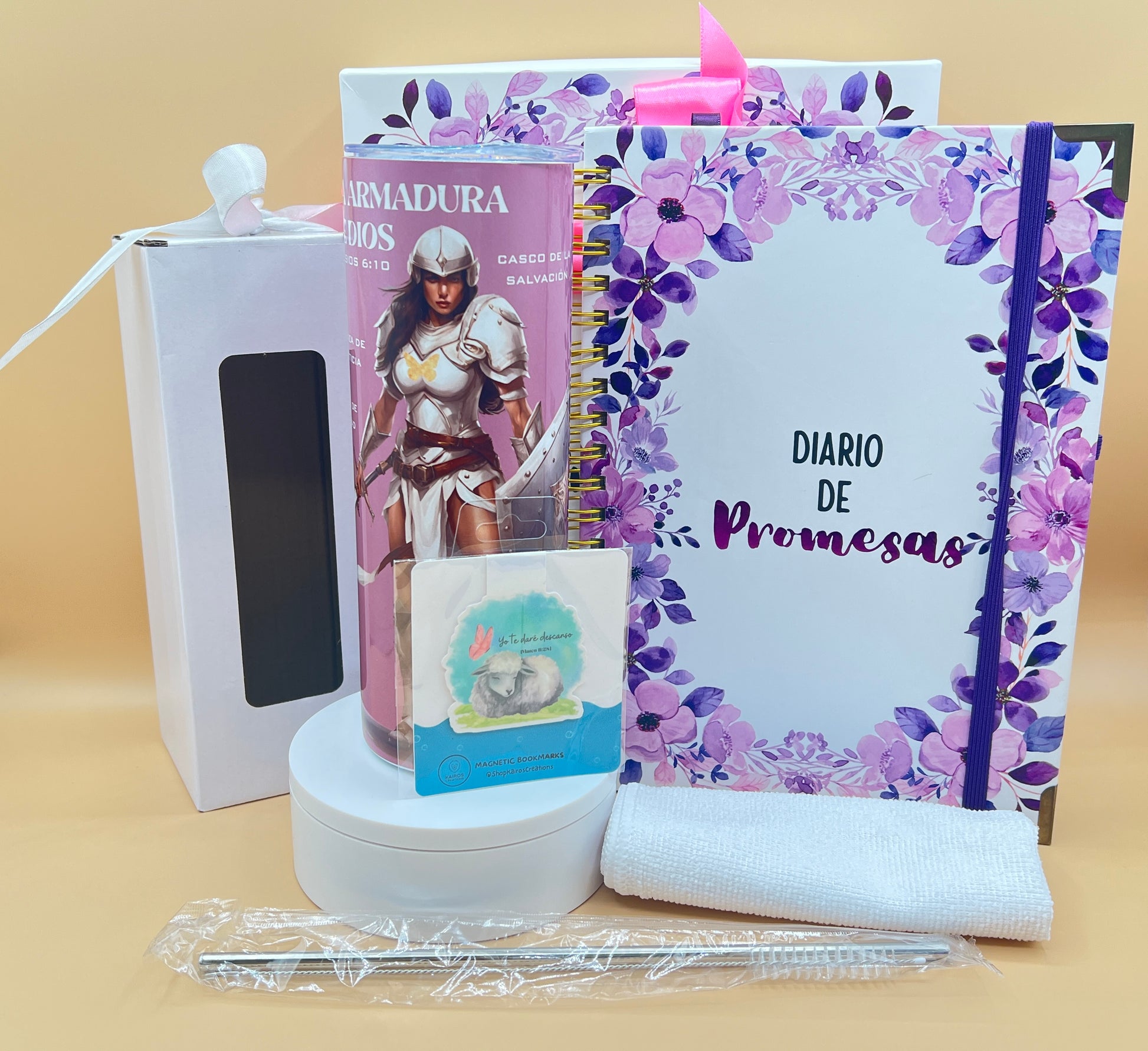 Bible Study Set with Diario de Promesas, Armor of God Tumbler & Magnetic Bookmark